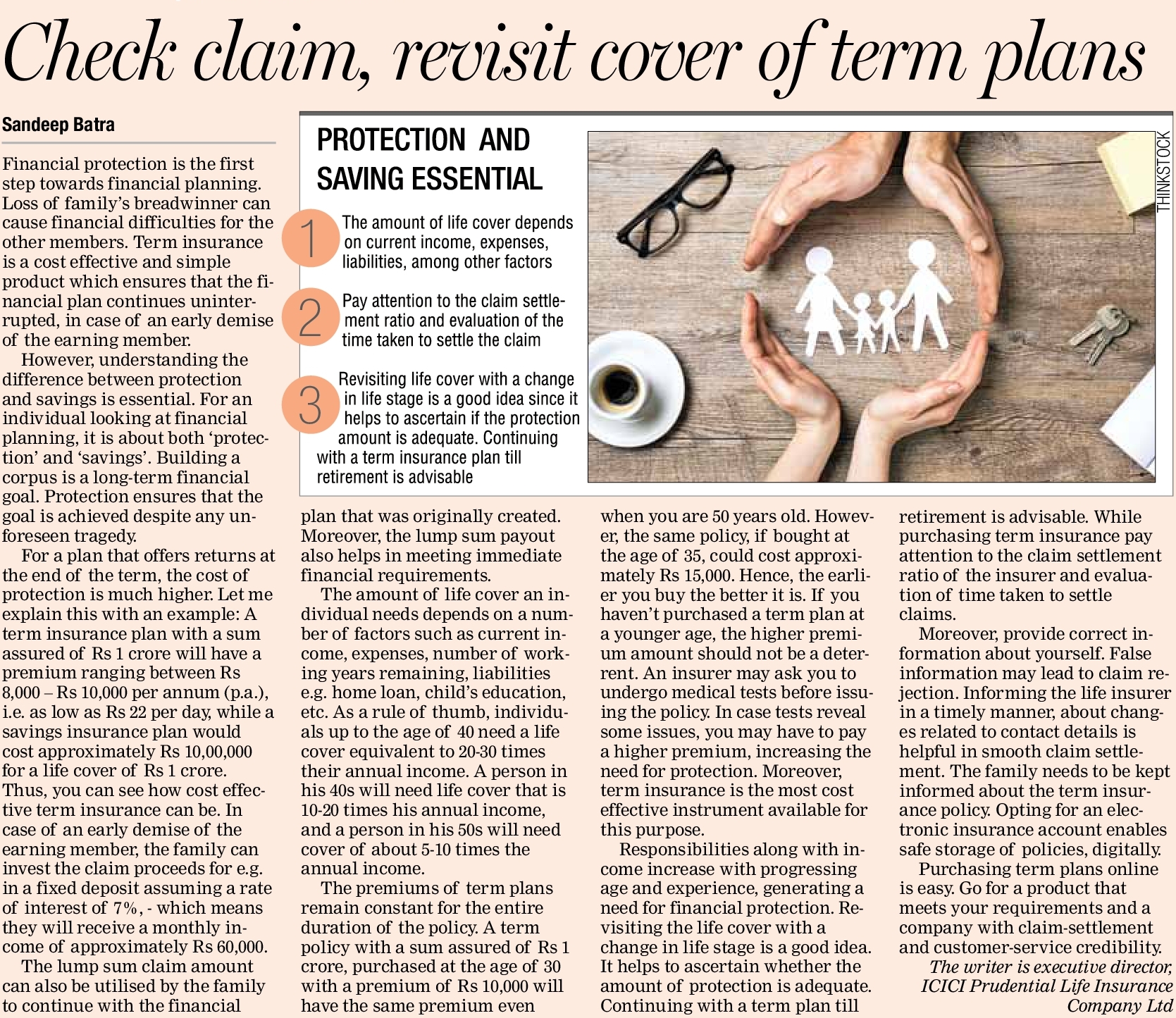 Inform your family: The family must know that you have purchased adequate life insurance policies to protect their future. As morbid as it may seem to talk about your death to your loved ones, it is financially prudent to tell your spouse or children (if they are grown up enough to understand) about the life insurance coverage that you have purchased for their financial security when you are gone. It is also a good practice to maintain a written record about details of the policies and leave simple instructions that can be accessed by your dependents when you are not around to guide them.